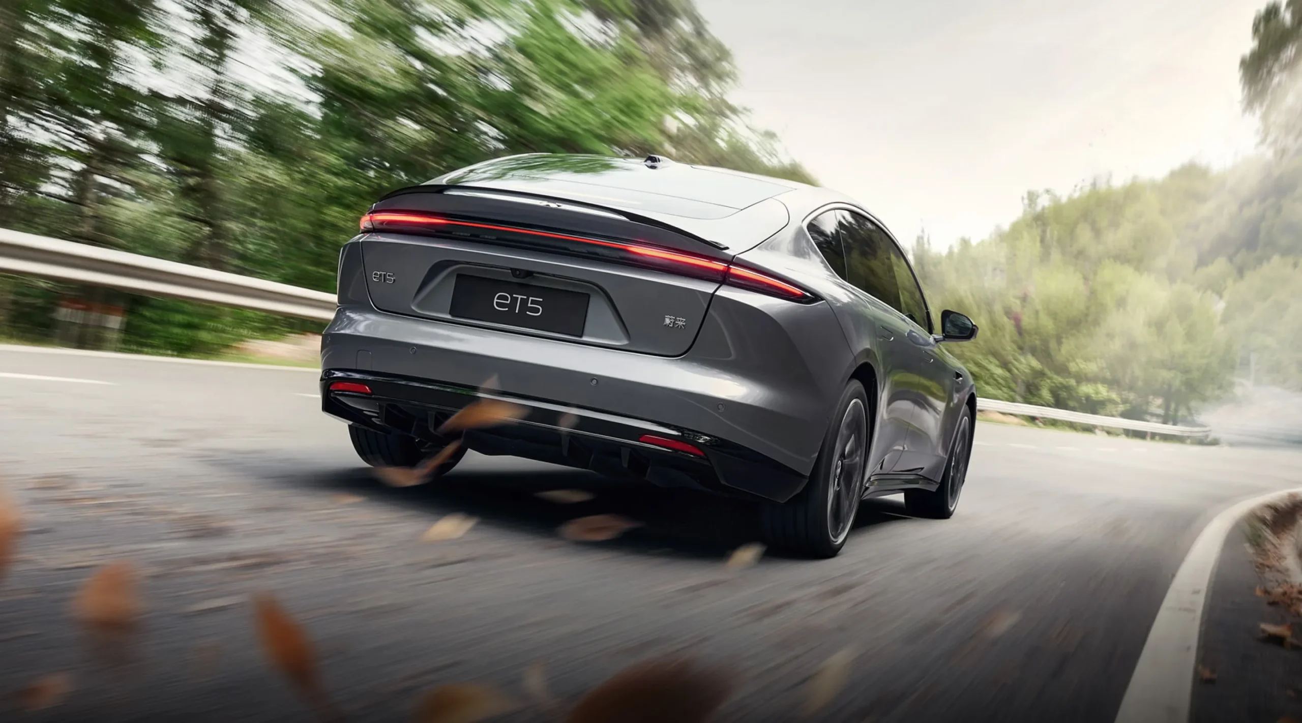 The extended front splitter and Shark Nose give a sharp front profile. From the ET9-inspired skirts, active grille shutters and air curtains, to ducktail spoiler and blade-style diffuser, every detail is shaped by aero. The New ET5 is designed to cut through air and command attention.